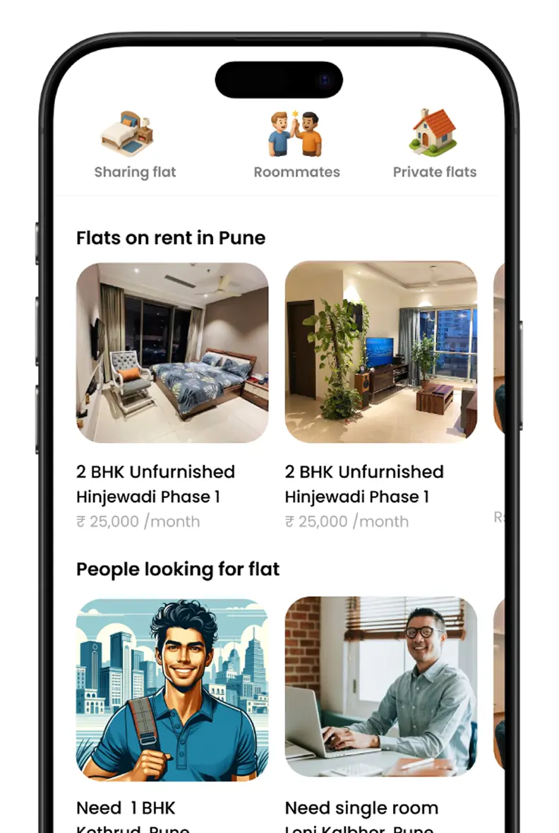 " what an app! they deserve an round of applause for solving a major problem in pune! i say i too found a roommate within a week "
